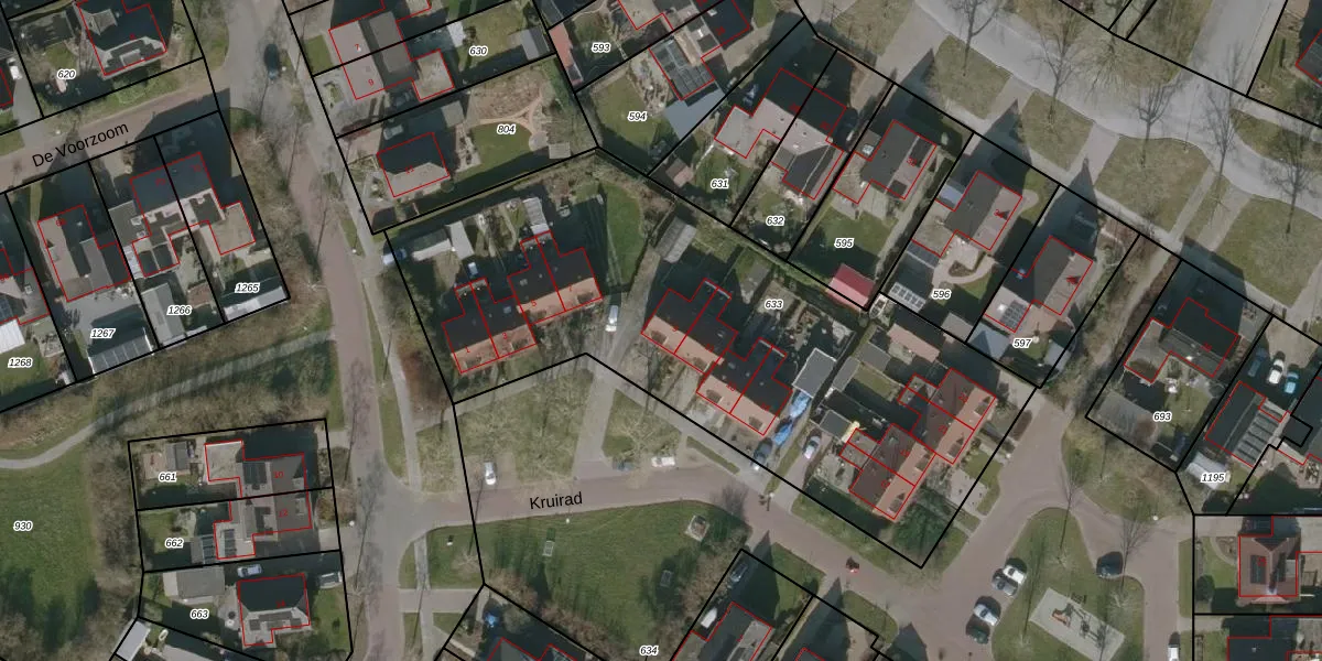 Het perceel waarop Kruirad 9 staat heeft een oppervlakte van 2813 m². Dit is een zeer groot perceel. De perceeloppervlakte wordt geregistreerd door het Kadaster. Gedetailleerde informatie over de maten van dit perceel kunt u vinden in het rapport Kadastrale kaart met maatvoering van Kruirad 9.