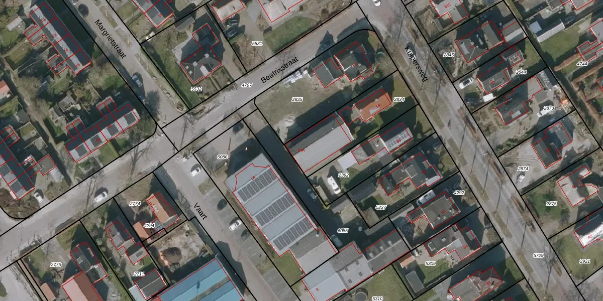 Kuipersweg 54-A is gelegen op kadastraal perceel BTP00A2834. Deze kadastrale aanduiding is uniek en wordt gebruikt door het Kadaster om eigendomsrechten en andere zakelijke rechten vast te leggen. Het perceel maakt onderdeel uit van de kadastrale gemeente Buitenpost.