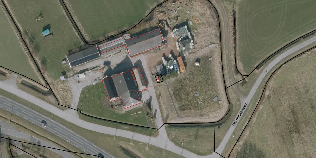 Het perceel waarop het adres ligt is BTP00-A-4003. De afkorting 'BTP00' staat voor kadastrale gemeente Buitenpost. Het perceel is kleiner dan gemiddeld in Buitenpost. Het perceel is 17 m² groot, terwijl het gemiddelde ligt op 4624,1 m². De grootste perceeloppervlakte in de kadastrale gemeente is 25,0 ha. De kleinste oppervlakte bedraagt 1 m². Op het perceel bevinden zich geen andere adressen. In de Basisregistratie Kadaster (BRK) werden de grenzen van het perceel geregistreerd op 30-11-2010.
