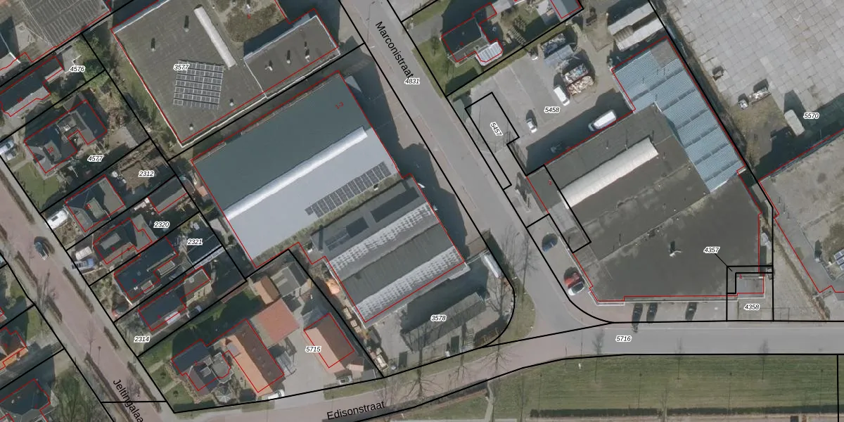 Het perceel waarop Marconistraat 1-B staat heeft een oppervlakte van 3350 m². Dit is een zeer groot perceel. De perceeloppervlakte wordt geregistreerd door het Kadaster. Gedetailleerde informatie over de maten van dit perceel kunt u vinden in het rapport Kadastrale kaart met maatvoering van Marconistraat 1-B.