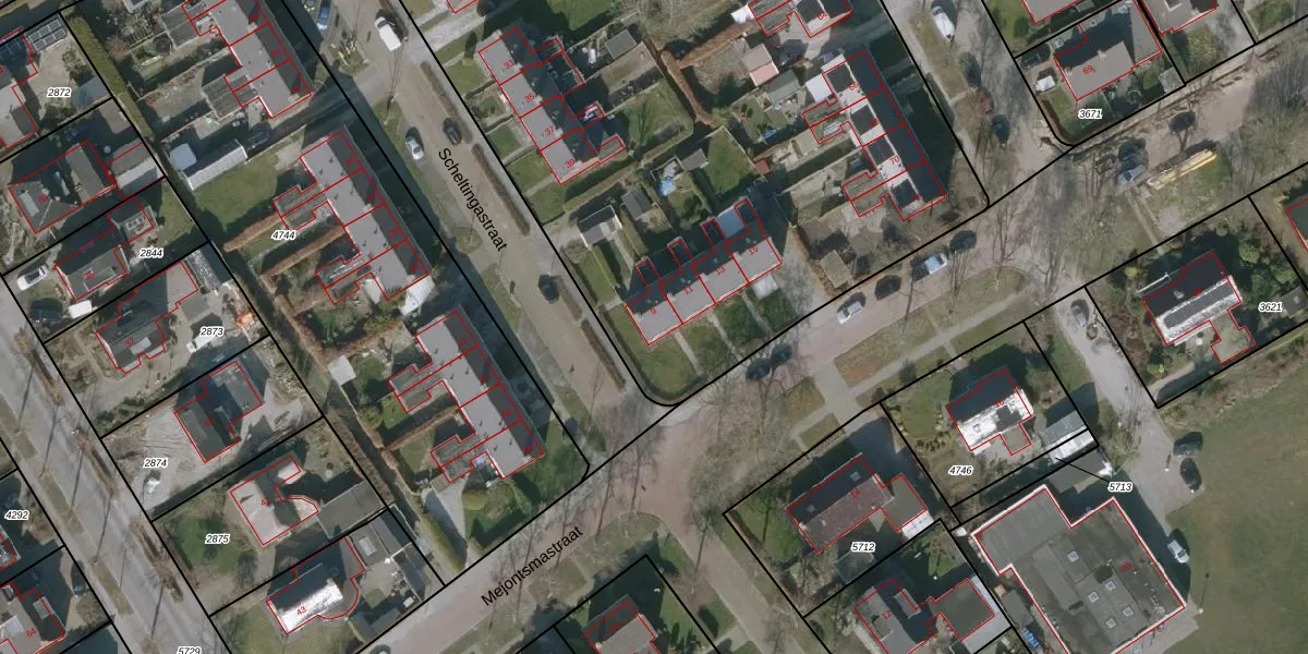 Het perceel waarop Mejontsmastraat 9 staat heeft een oppervlakte van 6130 m². Dit is een zeer groot perceel. De perceeloppervlakte wordt geregistreerd door het Kadaster. Gedetailleerde informatie over de maten van dit perceel kunt u vinden in het rapport Kadastrale kaart met maatvoering van Mejontsmastraat 9.