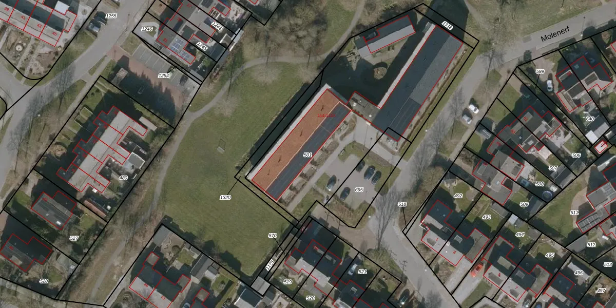 Het perceel waarop Molenerf 114-U staat heeft een oppervlakte van 2223 m². Dit is een zeer groot perceel. De perceeloppervlakte wordt geregistreerd door het Kadaster. Gedetailleerde informatie over de maten van dit perceel kunt u vinden in het rapport Kadastrale kaart met maatvoering van Molenerf 114-U.