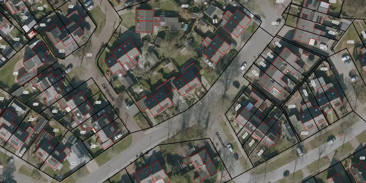 Het perceel waarop Molenerf 21 staat heeft een oppervlakte van 5741 m². Dit is een zeer groot perceel. De perceeloppervlakte wordt geregistreerd door het Kadaster. Gedetailleerde informatie over de maten van dit perceel kunt u vinden in het rapport Kadastrale kaart met maatvoering van Molenerf 21.