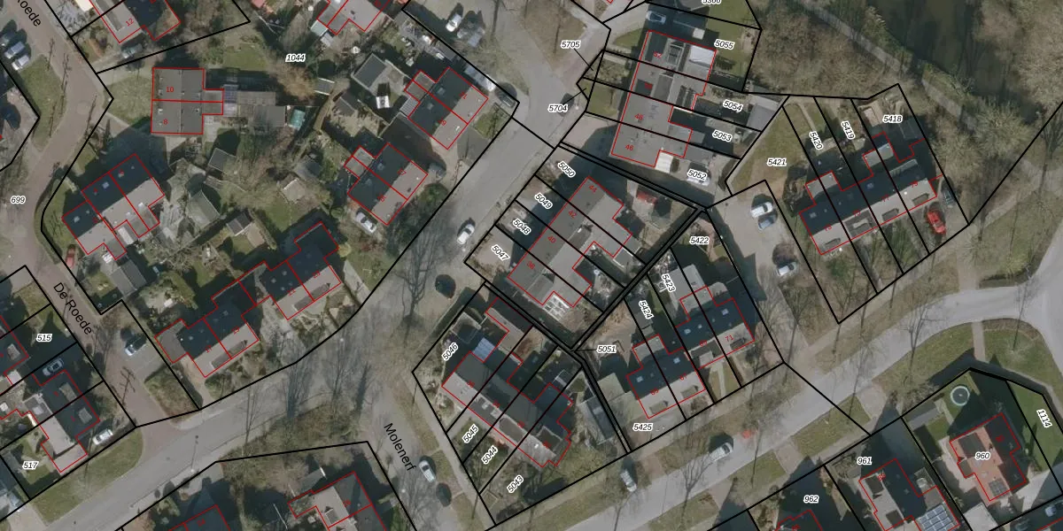 Het perceel waarop Molenerf 38 staat heeft een oppervlakte van 238 m². Dit is een middelgroot perceel. De perceeloppervlakte wordt geregistreerd door het Kadaster. Gedetailleerde informatie over de maten van dit perceel kunt u vinden in het rapport Kadastrale kaart met maatvoering van Molenerf 38.