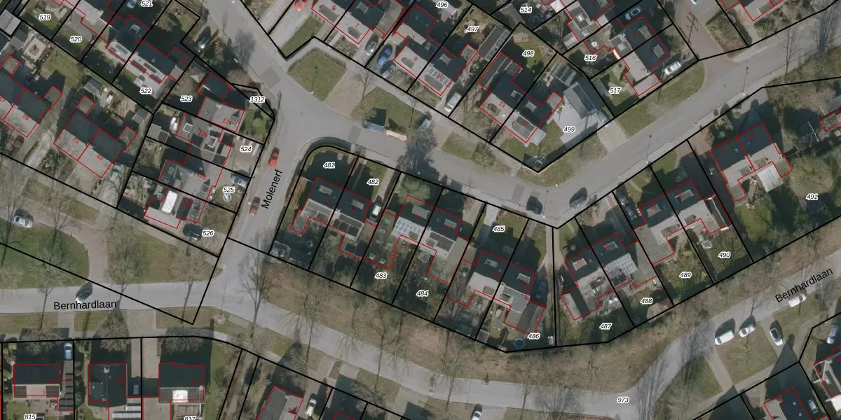 Het perceel waarop Molenerf 6 staat heeft een oppervlakte van 327 m². Dit is een groot perceel. De perceeloppervlakte wordt geregistreerd door het Kadaster. Gedetailleerde informatie over de maten van dit perceel kunt u vinden in het rapport Kadastrale kaart met maatvoering van Molenerf 6.