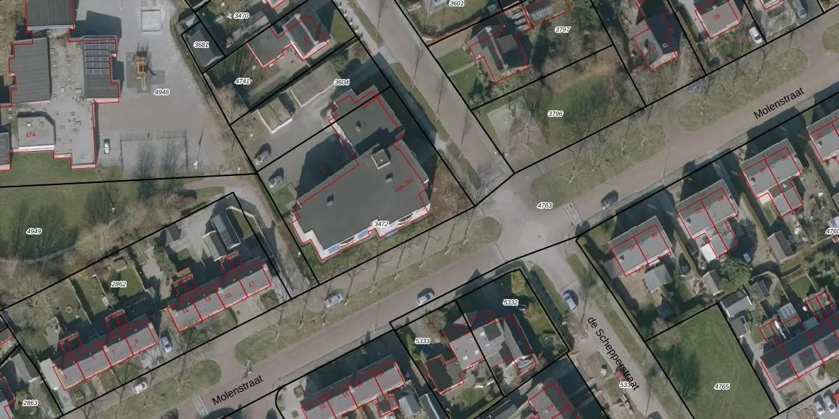 Het perceel waarop Molenstraat 25-A staat heeft een oppervlakte van 1306 m². Dit is een zeer groot perceel. De perceeloppervlakte wordt geregistreerd door het Kadaster. Gedetailleerde informatie over de maten van dit perceel kunt u vinden in het rapport Kadastrale kaart met maatvoering van Molenstraat 25-A.