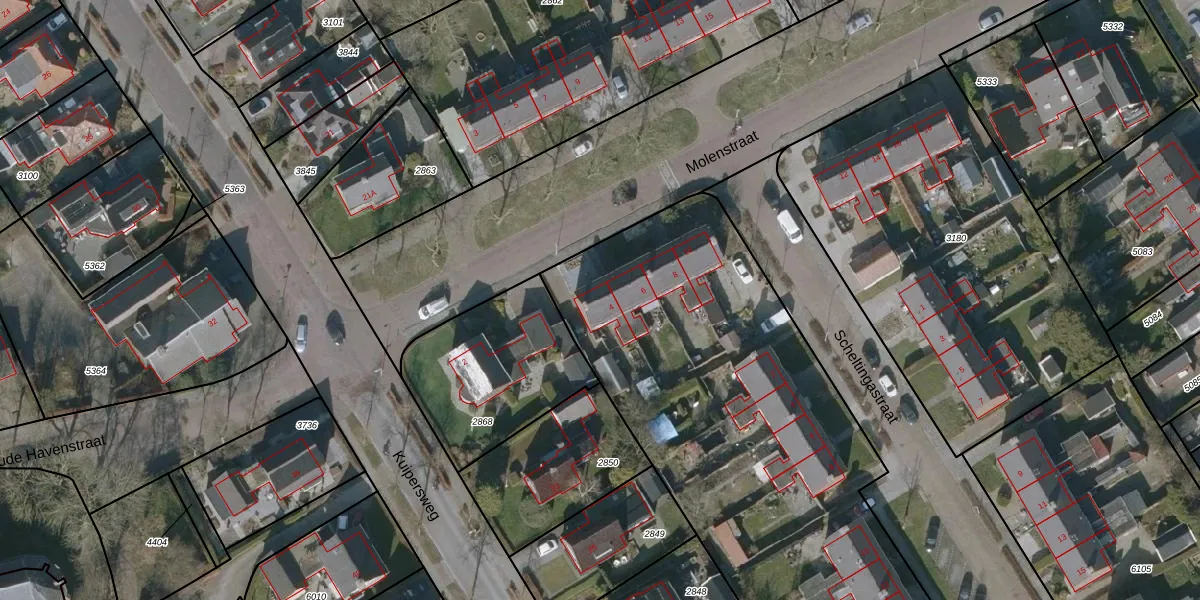 Het perceel waarop Molenstraat 4 staat heeft een oppervlakte van 3825 m². Dit is een zeer groot perceel. De perceeloppervlakte wordt geregistreerd door het Kadaster. Gedetailleerde informatie over de maten van dit perceel kunt u vinden in het rapport Kadastrale kaart met maatvoering van Molenstraat 4.