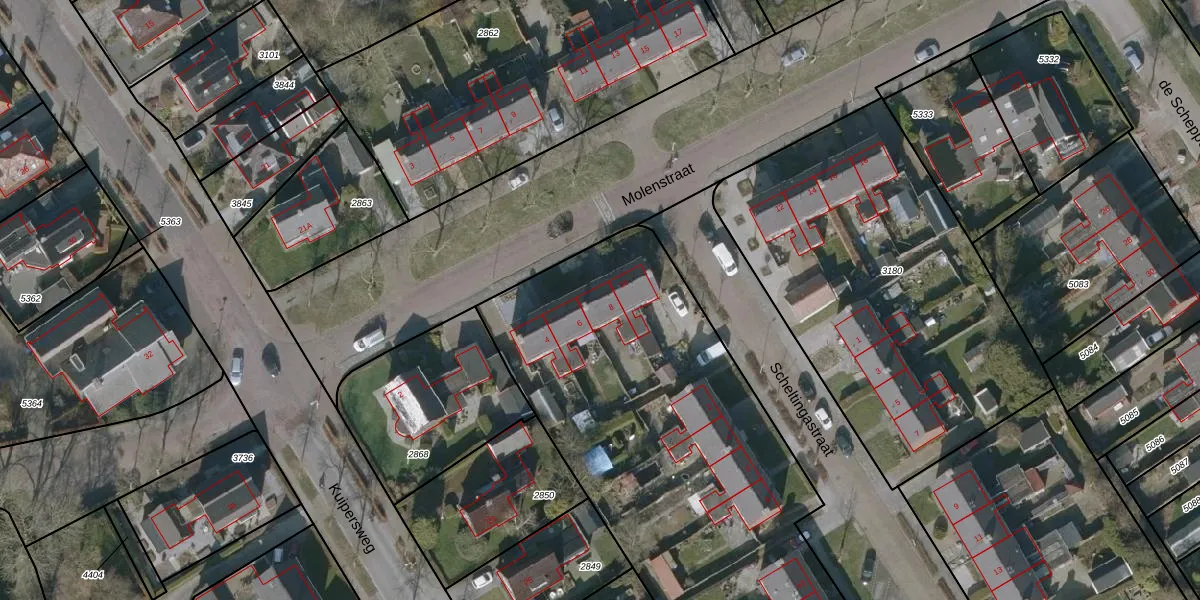 Het perceel waarop Molenstraat 8 staat heeft een oppervlakte van 3825 m². Dit is een zeer groot perceel. De perceeloppervlakte wordt geregistreerd door het Kadaster. Gedetailleerde informatie over de maten van dit perceel kunt u vinden in het rapport Kadastrale kaart met maatvoering van Molenstraat 8.
