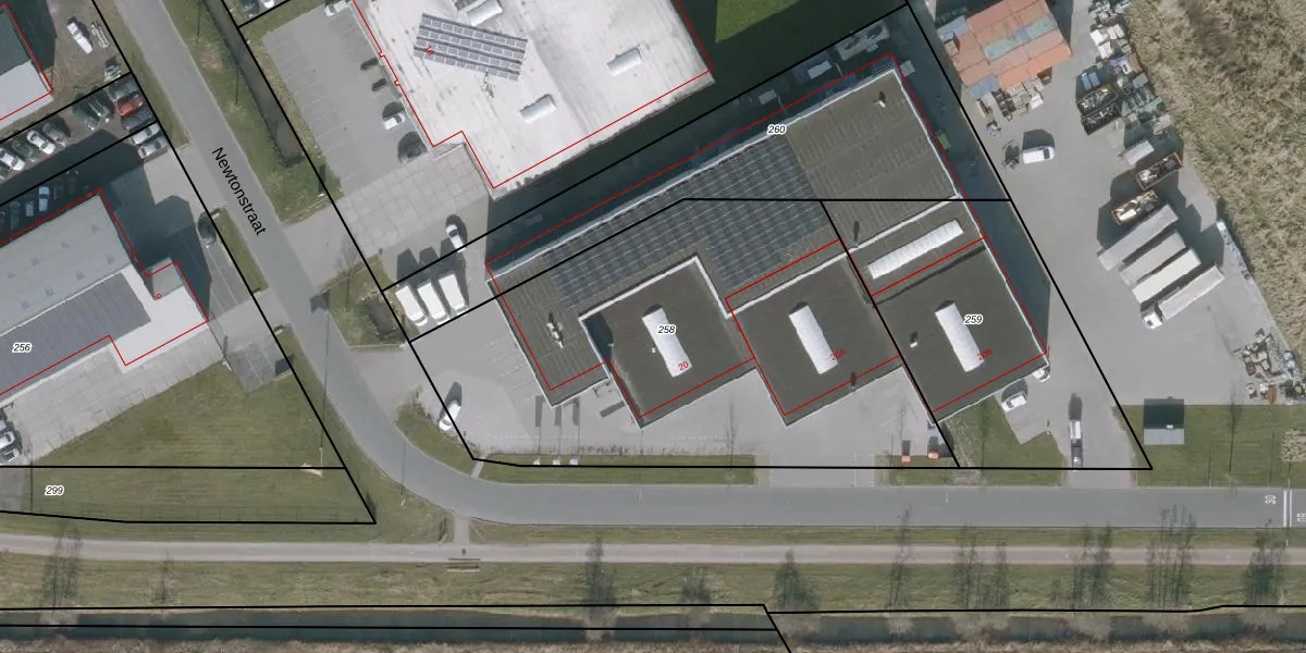 Het perceel waarop Newtonstraat 20 staat heeft een oppervlakte van 2450 m². Dit is een zeer groot perceel. De perceeloppervlakte wordt geregistreerd door het Kadaster. Gedetailleerde informatie over de maten van dit perceel kunt u vinden in het rapport Kadastrale kaart met maatvoering van Newtonstraat 20.