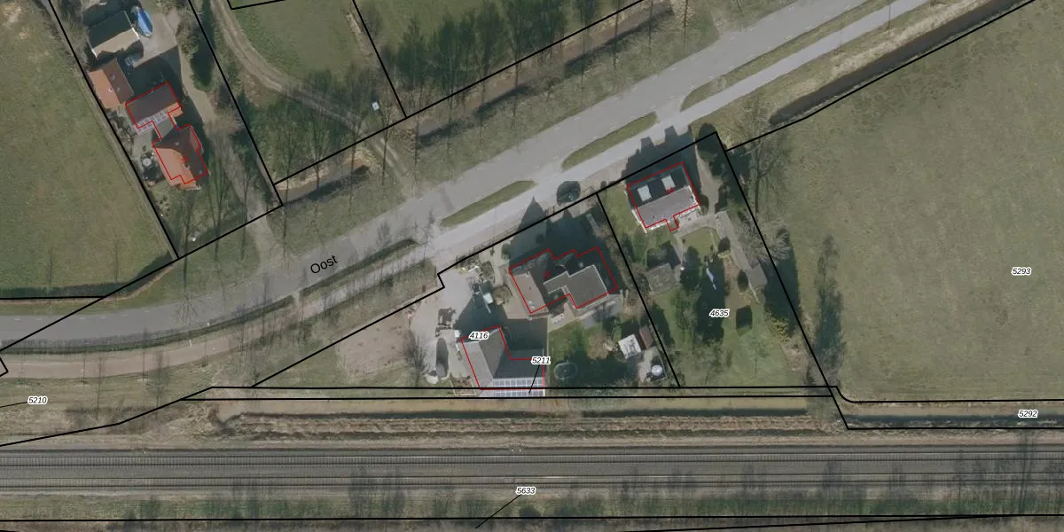 Het perceel waarop Oost 10 staat heeft een oppervlakte van 1444 m². Dit is een zeer groot perceel. De perceeloppervlakte wordt geregistreerd door het Kadaster. Gedetailleerde informatie over de maten van dit perceel kunt u vinden in het rapport Kadastrale kaart met maatvoering van Oost 10.