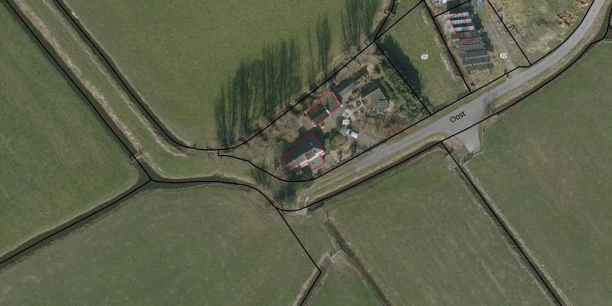 Het perceel waarop Oost 26 staat heeft een oppervlakte van 1400 m². Dit is een zeer groot perceel. De perceeloppervlakte wordt geregistreerd door het Kadaster. Gedetailleerde informatie over de maten van dit perceel kunt u vinden in het rapport Kadastrale kaart met maatvoering van Oost 26.