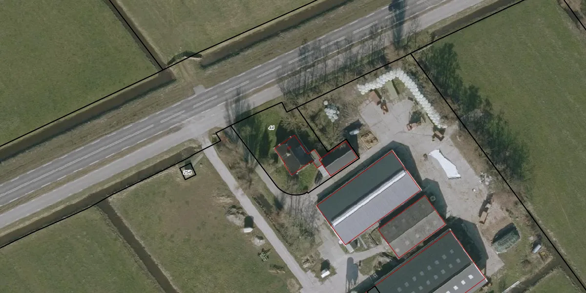 Het perceel waarop het adres ligt is BTP00-D-44. De afkorting 'BTP00' staat voor kadastrale gemeente Buitenpost. Het perceel is kleiner dan gemiddeld in Buitenpost. Het perceel is 715 m² groot, terwijl het gemiddelde ligt op 4624,1 m². Het kleinste perceel in de kadastrale gemeente is 1 m² groot. De grootste perceeloppervlakte is 25,0 ha. Er zijn geen andere adressen aanwezig op het perceel. In de Basisregistratie Kadaster (BRK) werden de grenzen van het perceel geregistreerd op 30-05-2006.