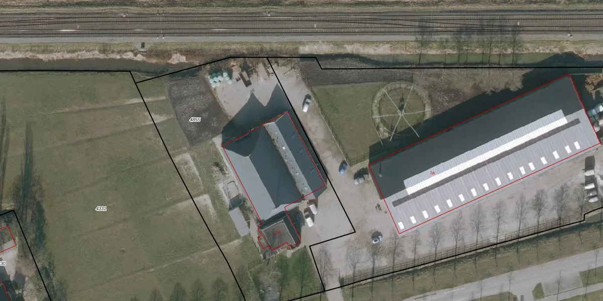 Het adres is gelegen op perceel 4855 in de sectie A en de kadastrale gemeente Buitenpost. De kadastrale aanduiding is aldus BTP00-A-4855. Het perceel is 3365 m² groot. Dat is kleiner dan de gemiddelde perceeloppervlakte in Buitenpost, dat op 4624,1 m² ligt. Het grootste perceel in de kadastrale gemeente is 25,0 ha. Het kleinste perceel heeft een oppervlakte van 1 m². Op het perceel liggen in totaal 6 adressen. De huidige grenzen van het perceel zijn digitaal in de Basisregistratie Kadaster (BRK) geregistreerd op 20-10-1998.
