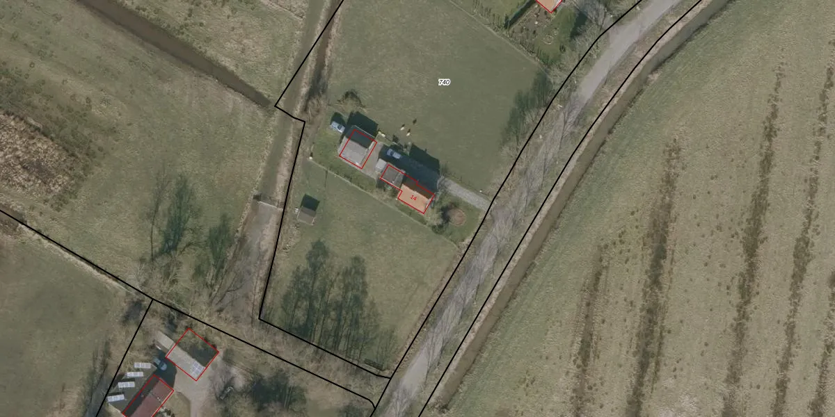 Oude Dijk 14 is gelegen op kadastraal perceel KTN00E740. Deze kadastrale aanduiding is uniek en wordt gebruikt door het Kadaster om eigendomsrechten en andere zakelijke rechten vast te leggen. Het perceel maakt onderdeel uit van de kadastrale gemeente Kooten.