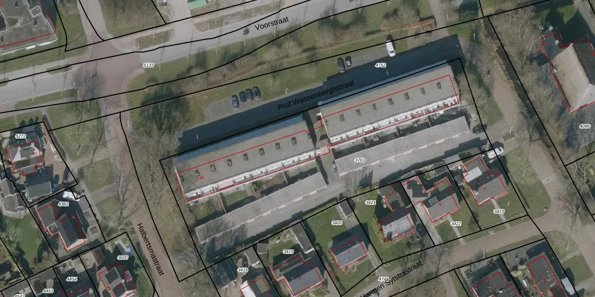 Prof.Wassenberghstraat 24 is gelegen op kadastraal perceel BTP00A3763. Deze kadastrale aanduiding is uniek en wordt gebruikt door het Kadaster om eigendomsrechten en andere zakelijke rechten vast te leggen. Het perceel maakt onderdeel uit van de kadastrale gemeente Buitenpost.