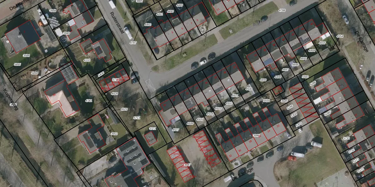 Gebruik de zoekbalk of klik op een perceel voor informatie over de adressen binnen dit perceel.
