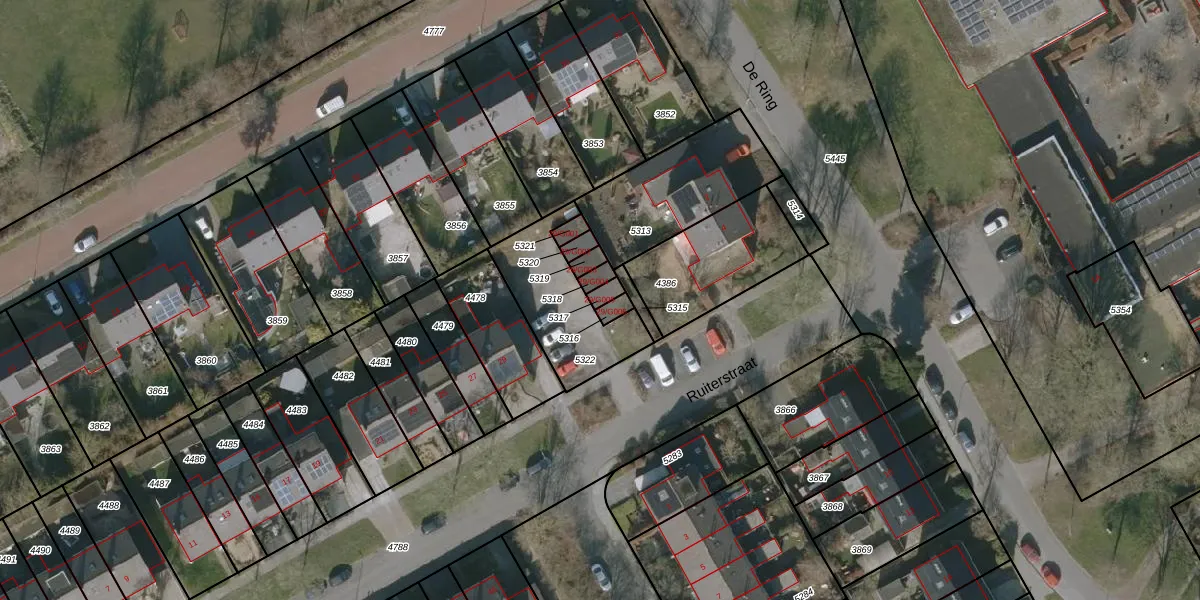 Gebruik de zoekbalk of klik op een perceel voor informatie over de adressen binnen dit perceel.