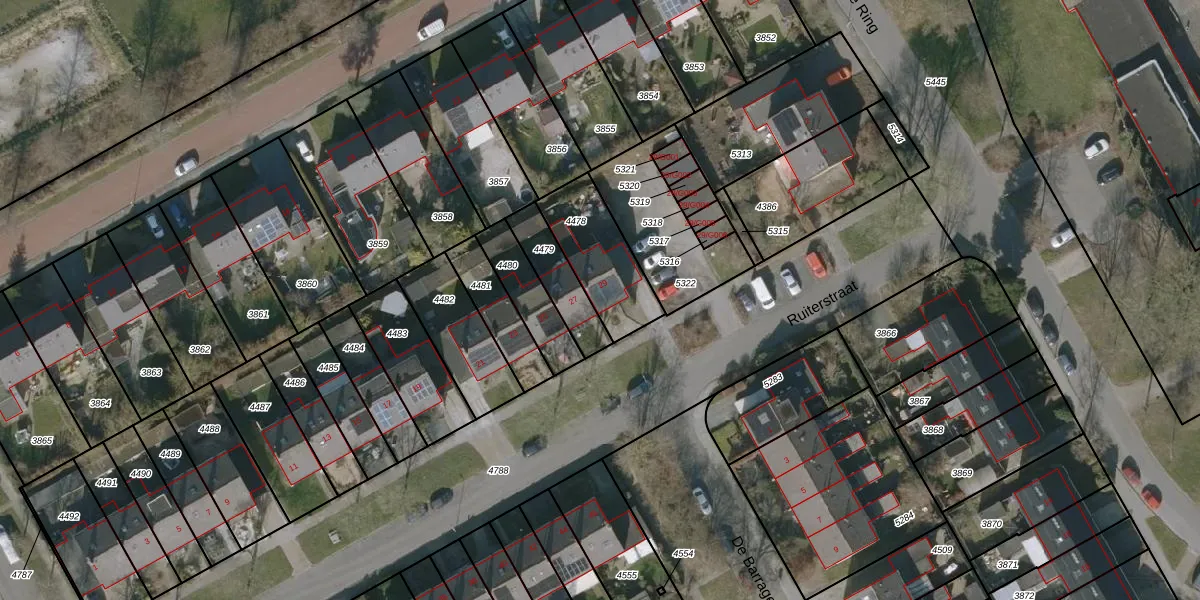 Het perceel waarop Ruiterstraat 29 staat heeft een oppervlakte van 269 m². Dit is een middelgroot perceel. De perceeloppervlakte wordt geregistreerd door het Kadaster. Gedetailleerde informatie over de maten van dit perceel kunt u vinden in het rapport Kadastrale kaart met maatvoering van Ruiterstraat 29.