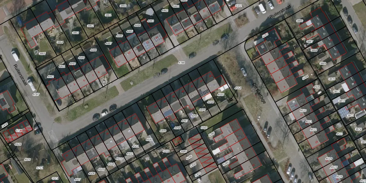 Het perceel waarop Ruiterstraat 40 staat heeft een oppervlakte van 153 m². Dit is een middelgroot perceel. De perceeloppervlakte wordt geregistreerd door het Kadaster. Gedetailleerde informatie over de maten van dit perceel kunt u vinden in het rapport Kadastrale kaart met maatvoering van Ruiterstraat 40.
