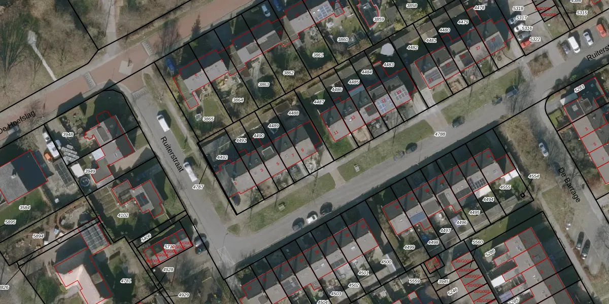 Gebruik de zoekbalk of klik op een perceel voor informatie over de adressen binnen dit perceel.
