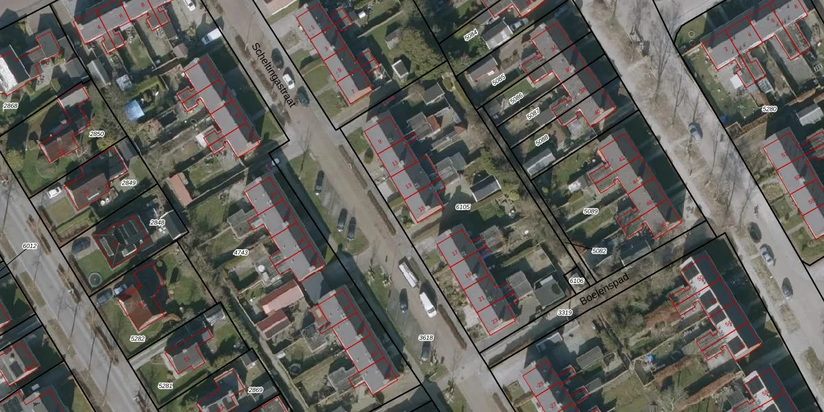 Het perceel waarop Scheltingastraat 15 staat heeft een oppervlakte van 2003 m². Dit is een zeer groot perceel. De perceeloppervlakte wordt geregistreerd door het Kadaster. Gedetailleerde informatie over de maten van dit perceel kunt u vinden in het rapport Kadastrale kaart met maatvoering van Scheltingastraat 15.