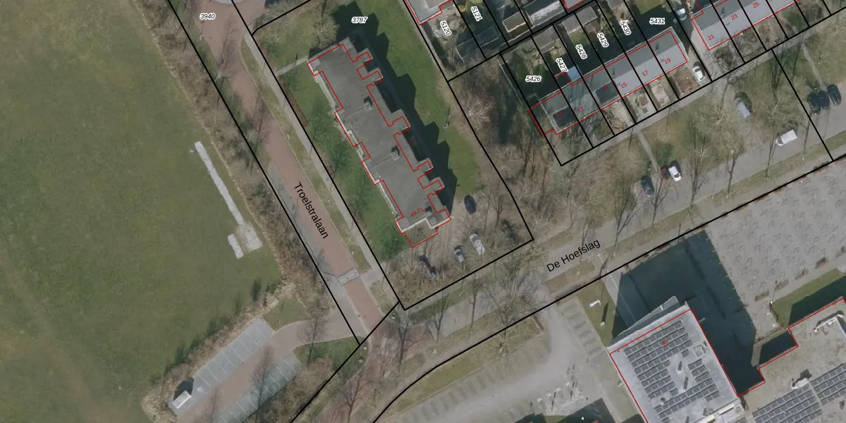 Het perceel waarop Troelstralaan 71 staat heeft een oppervlakte van 2628 m². Dit is een zeer groot perceel. De perceeloppervlakte wordt geregistreerd door het Kadaster. Gedetailleerde informatie over de maten van dit perceel kunt u vinden in het rapport Kadastrale kaart met maatvoering van Troelstralaan 71.