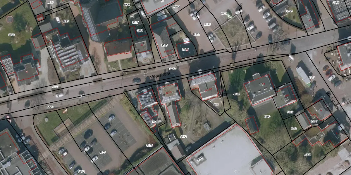 Het perceel waarop Voorstraat 22 staat heeft een oppervlakte van 1166 m². Dit is een zeer groot perceel. De perceeloppervlakte wordt geregistreerd door het Kadaster. Gedetailleerde informatie over de maten van dit perceel kunt u vinden in het rapport Kadastrale kaart met maatvoering van Voorstraat 22.