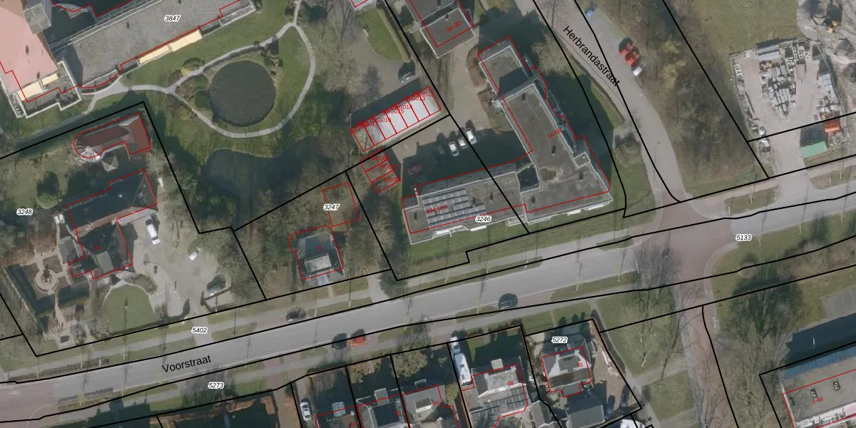 Het perceel waarop Voorstraat 53-B staat heeft een oppervlakte van 950 m². Dit is een groot perceel. De perceeloppervlakte wordt geregistreerd door het Kadaster. Gedetailleerde informatie over de maten van dit perceel kunt u vinden in het rapport Kadastrale kaart met maatvoering van Voorstraat 53-B.