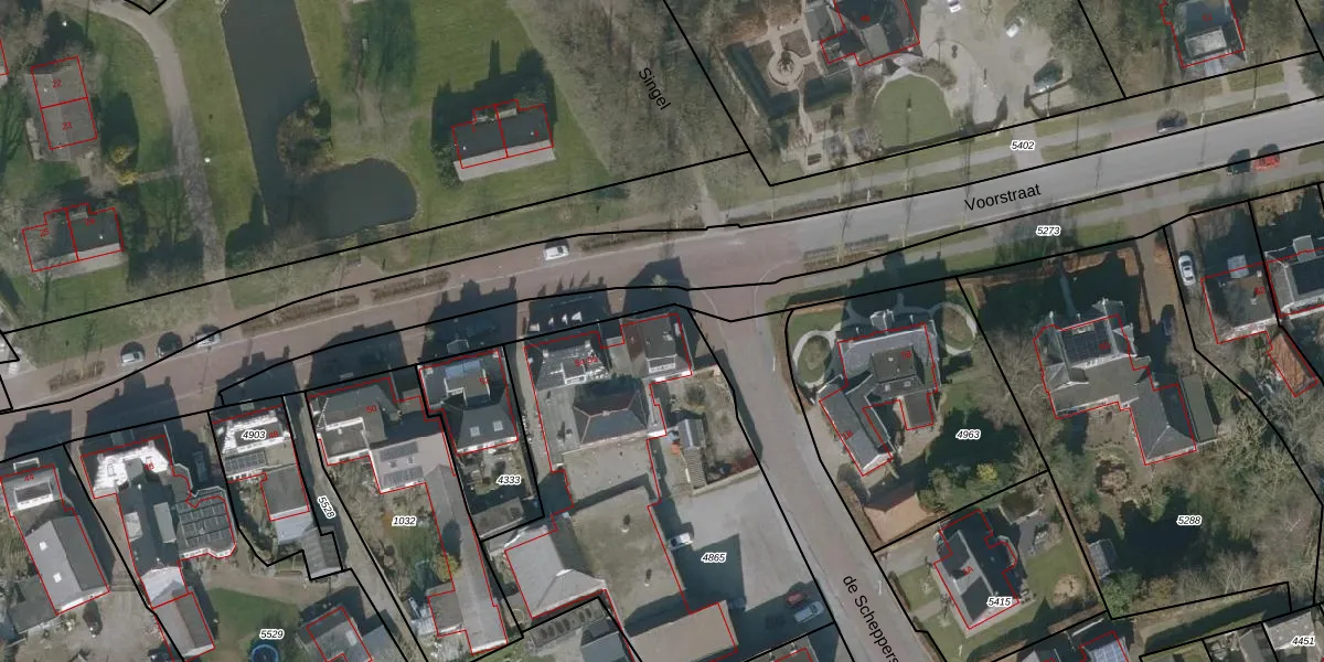 Het perceel waarop Voorstraat 56 staat heeft een oppervlakte van 1900 m². Dit is een zeer groot perceel. De perceeloppervlakte wordt geregistreerd door het Kadaster. Gedetailleerde informatie over de maten van dit perceel kunt u vinden in het rapport Kadastrale kaart met maatvoering van Voorstraat 56.