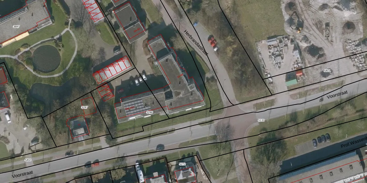 Het adres is gelegen op perceel 6128 in de sectie A en de kadastrale gemeente Buitenpost. De kadastrale aanduiding is aldus BTP00-A-6128. Het perceel is 4054 m² groot. Dat is kleiner dan de gemiddelde perceeloppervlakte in Buitenpost, dat op 4624,1 m² ligt. Het grootste perceel in de kadastrale gemeente is 25,0 ha. Het kleinste perceel heeft een oppervlakte van 1 m². Er zijn 25 adressen aanwezig op het perceel. De huidige grenzen van het perceel zijn digitaal in de Basisregistratie Kadaster (BRK) geregistreerd op 29-11-2023.
