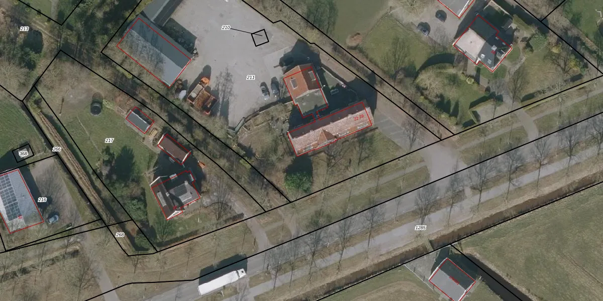 Het adres ligt op het perceel BTP00-E-211, dat zich in de kadastrale gemeente Buitenpost bevindt. De gemiddelde perceelgrootte in Buitenpost is 4624,1 m². Dit perceel is kleiner: de perceeloppervlakte bedraagt 4070 m². Het grootste perceel in de kadastrale gemeente is 25,0 ha. Het kleinste perceel heeft een oppervlakte van 1 m². Op het perceel zijn 4 adressen aanwezig. De laatste wijziging in het de Basisregistratie Kadaster (BRK) was op 20-01-2004.