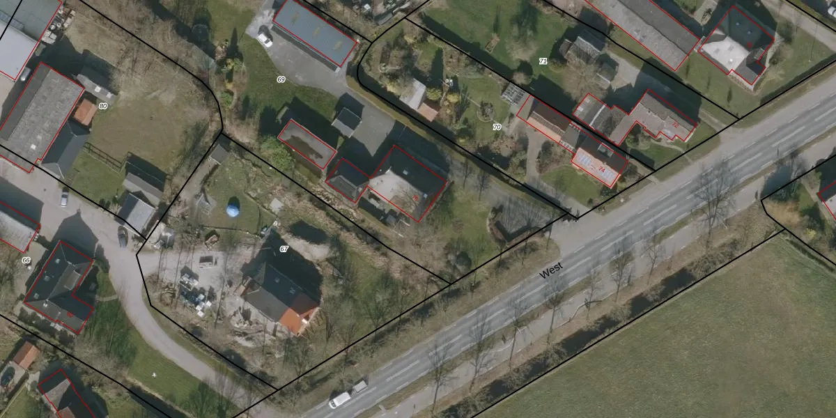 Het perceel waarop West 76 staat heeft een oppervlakte van 4305 m². Dit is een zeer groot perceel. De perceeloppervlakte wordt geregistreerd door het Kadaster. Gedetailleerde informatie over de maten van dit perceel kunt u vinden in het rapport Kadastrale kaart met maatvoering van West 76.