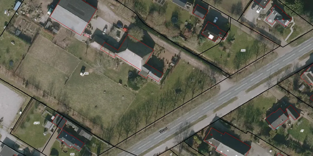 Het perceel waarop West 92 staat heeft een oppervlakte van 9400 m². Dit is een zeer groot perceel. De perceeloppervlakte wordt geregistreerd door het Kadaster. Gedetailleerde informatie over de maten van dit perceel kunt u vinden in het rapport Kadastrale kaart met maatvoering van West 92.