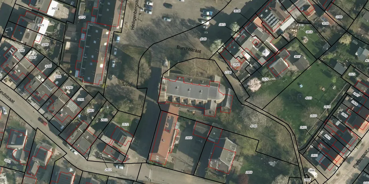 Het perceel waarop Burchtstraat 2-b staat heeft een oppervlakte van 1653 m². Dit is een zeer groot perceel. De perceeloppervlakte wordt geregistreerd door het Kadaster. Gedetailleerde informatie over de maten van dit perceel kunt u vinden in het rapport Kadastrale kaart met maatvoering van Burchtstraat 2-b.