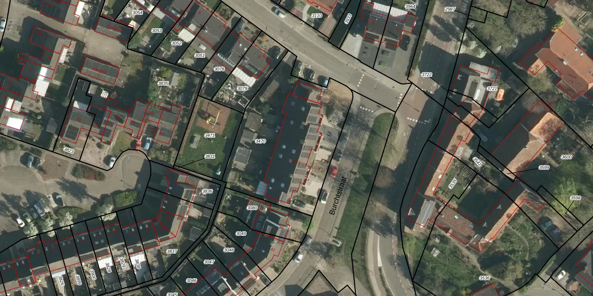 Burchtstraat 53 is gelegen op kadastraal perceel BDE00B3470. Deze kadastrale aanduiding is uniek en wordt gebruikt door het Kadaster om eigendomsrechten en andere zakelijke rechten vast te leggen. Het perceel maakt onderdeel uit van de kadastrale gemeente Bunde.