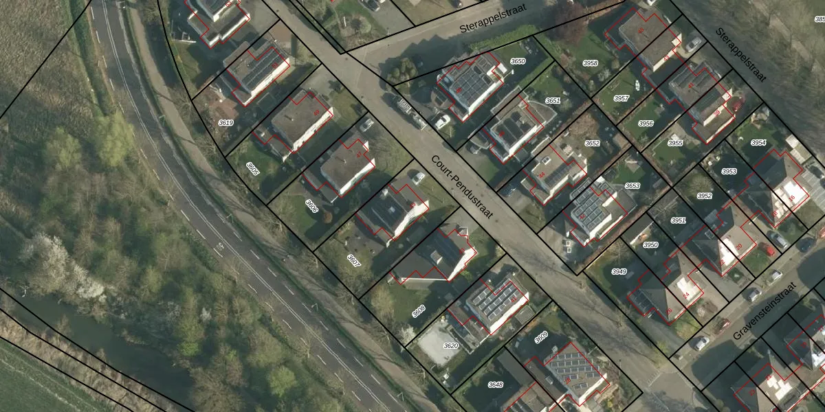 Het perceel waarop Court-Pendustraat 45 staat heeft een oppervlakte van 540 m². Dit is een groot perceel. De perceeloppervlakte wordt geregistreerd door het Kadaster. Gedetailleerde informatie over de maten van dit perceel kunt u vinden in het rapport Kadastrale kaart met maatvoering van Court-Pendustraat 45.