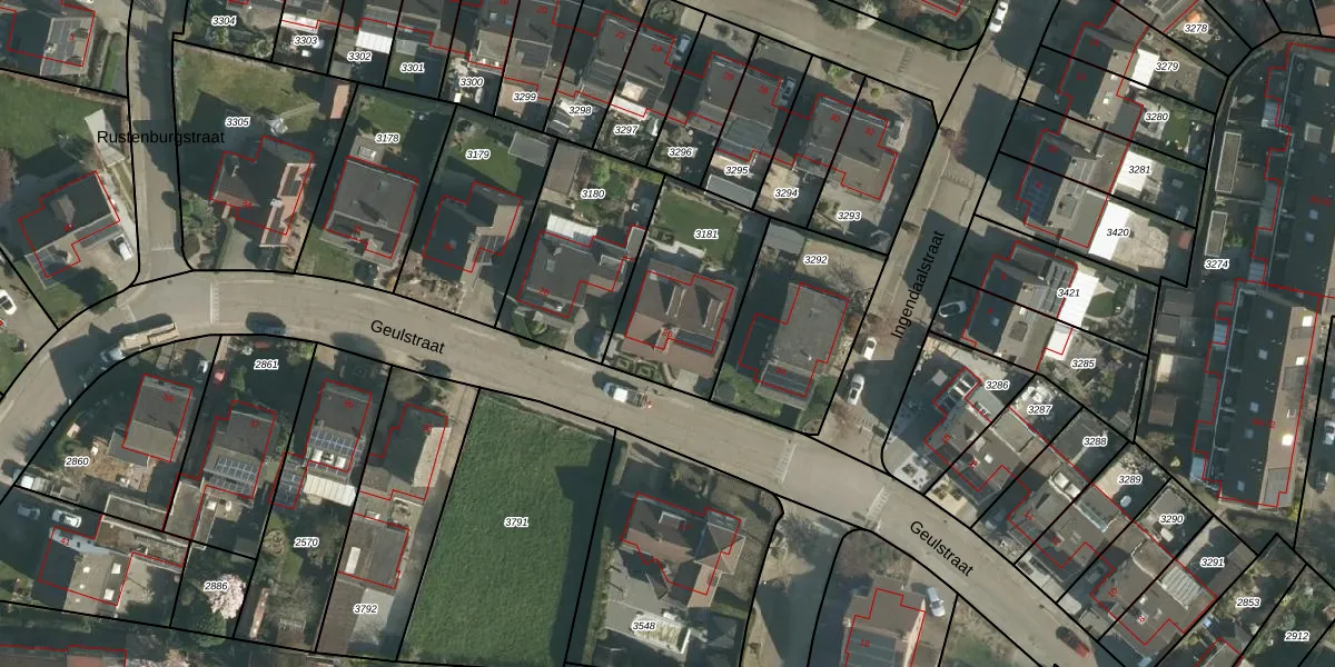 Het perceel waarop Geulstraat 26 staat heeft een oppervlakte van 503 m². Dit is een groot perceel. De perceeloppervlakte wordt geregistreerd door het Kadaster. Gedetailleerde informatie over de maten van dit perceel kunt u vinden in het rapport Kadastrale kaart met maatvoering van Geulstraat 26.