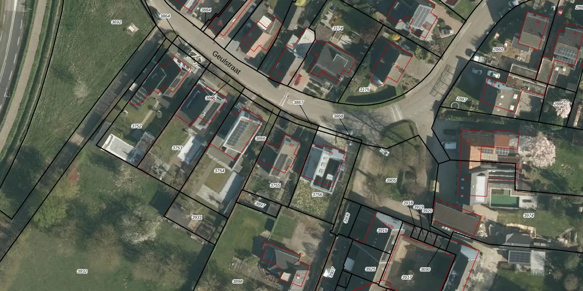 Geulstraat 57 is gelegen op kadastraal perceel BDE00B3755. Deze kadastrale aanduiding is uniek en wordt gebruikt door het Kadaster om eigendomsrechten en andere zakelijke rechten vast te leggen. Het perceel maakt onderdeel uit van de kadastrale gemeente Bunde.