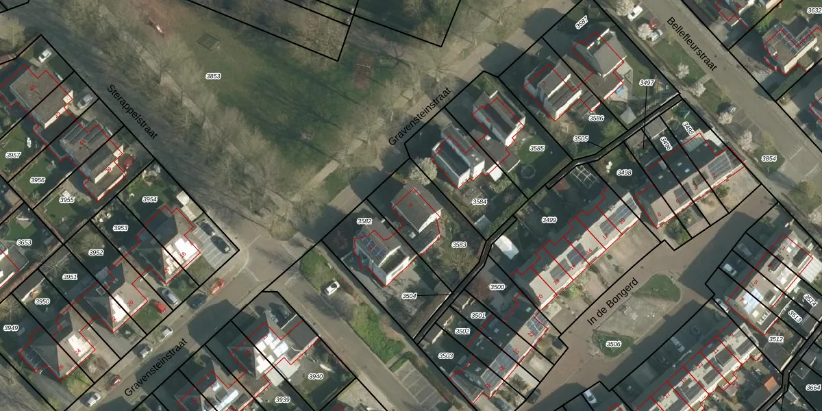 Gravensteinstraat 9 is gelegen op kadastraal perceel BDE00B3583. Deze kadastrale aanduiding is uniek en wordt gebruikt door het Kadaster om eigendomsrechten en andere zakelijke rechten vast te leggen. Het perceel maakt onderdeel uit van de kadastrale gemeente Bunde.