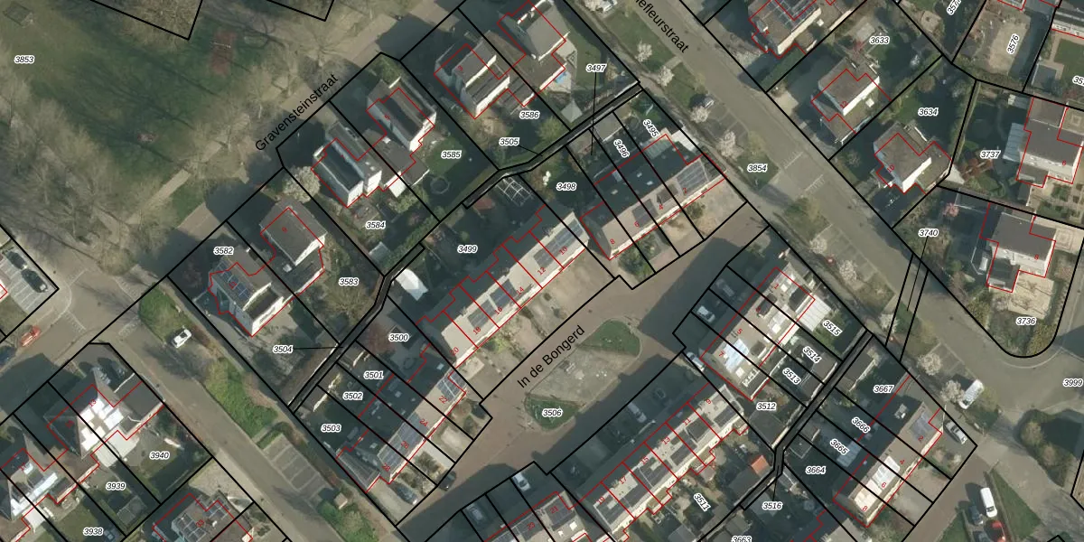 In de Bongerd 12 is gelegen op kadastraal perceel BDE00B3499. Deze kadastrale aanduiding is uniek en wordt gebruikt door het Kadaster om eigendomsrechten en andere zakelijke rechten vast te leggen. Het perceel maakt onderdeel uit van de kadastrale gemeente Bunde.