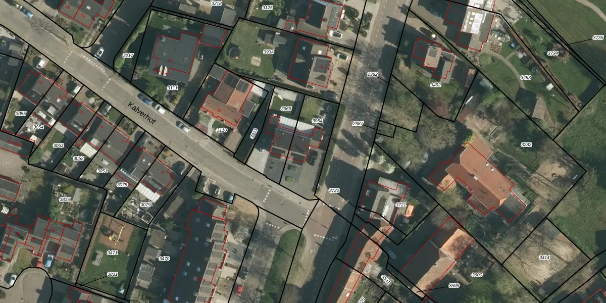 Het perceel waarop Kalverhof 2 staat heeft een oppervlakte van 388 m². Dit is een groot perceel. De perceeloppervlakte wordt geregistreerd door het Kadaster. Gedetailleerde informatie over de maten van dit perceel kunt u vinden in het rapport Kadastrale kaart met maatvoering van Kalverhof 2.