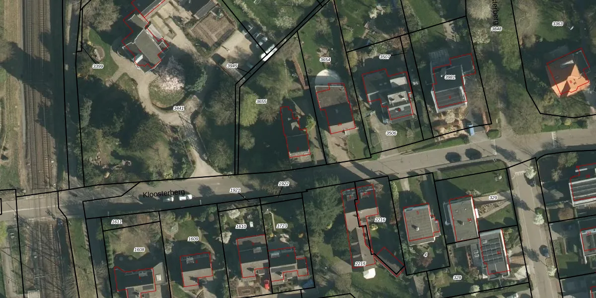 Het perceel waarop Kloosterberg 2 staat heeft een oppervlakte van 1040 m². Dit is een zeer groot perceel. De perceeloppervlakte wordt geregistreerd door het Kadaster. Gedetailleerde informatie over de maten van dit perceel kunt u vinden in het rapport Kadastrale kaart met maatvoering van Kloosterberg 2.