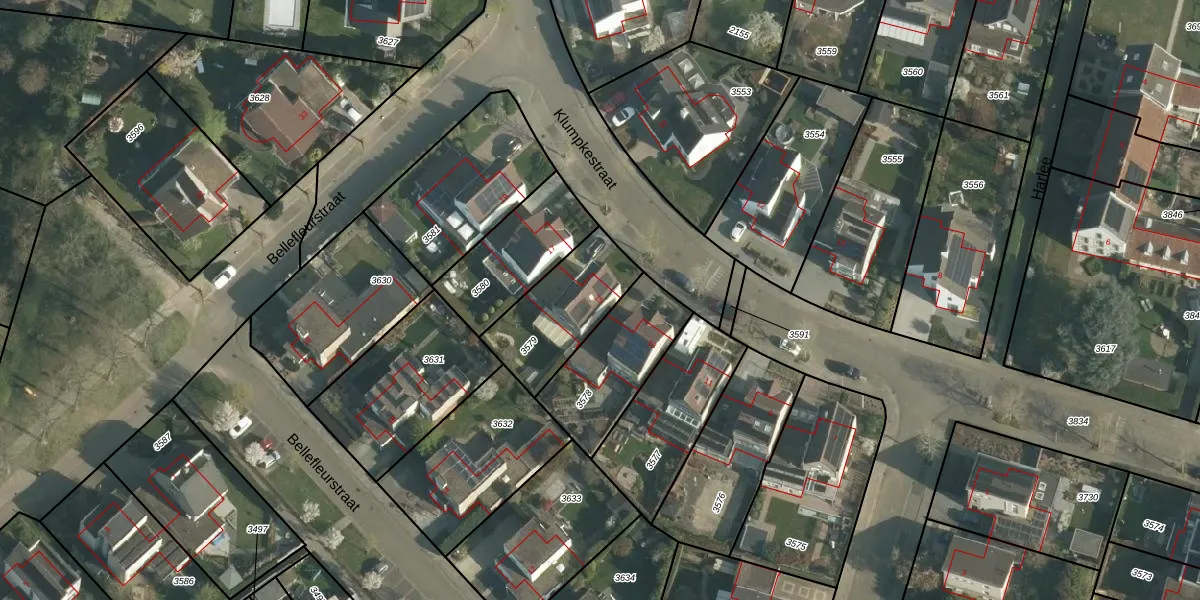 Klumpkestraat 15 is gelegen op kadastraal perceel BDE00B3579. Deze kadastrale aanduiding is uniek en wordt gebruikt door het Kadaster om eigendomsrechten en andere zakelijke rechten vast te leggen. Het perceel maakt onderdeel uit van de kadastrale gemeente Bunde.