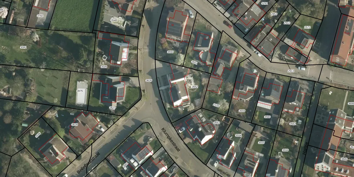 Klumpkestraat 16 is gelegen op kadastraal perceel BDE00B3552. Deze kadastrale aanduiding is uniek en wordt gebruikt door het Kadaster om eigendomsrechten en andere zakelijke rechten vast te leggen. Het perceel maakt onderdeel uit van de kadastrale gemeente Bunde.