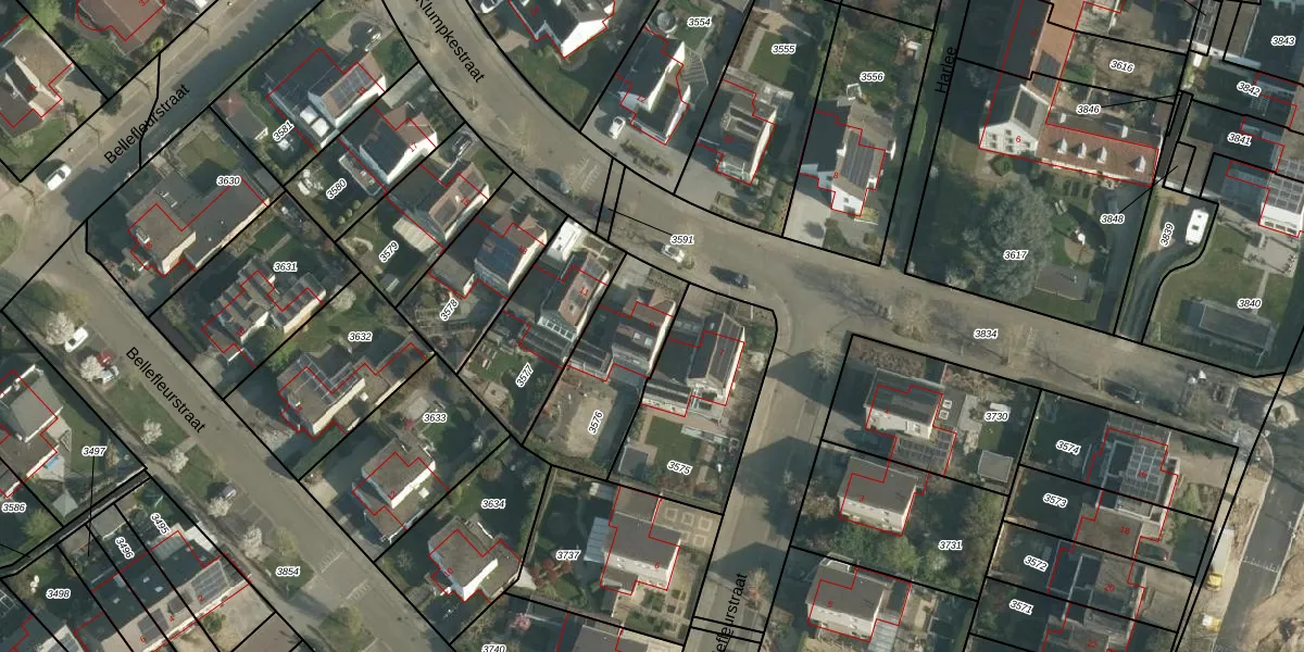 Klumpkestraat 9 is gelegen op kadastraal perceel BDE00B3576. Deze kadastrale aanduiding is uniek en wordt gebruikt door het Kadaster om eigendomsrechten en andere zakelijke rechten vast te leggen. Het perceel maakt onderdeel uit van de kadastrale gemeente Bunde.