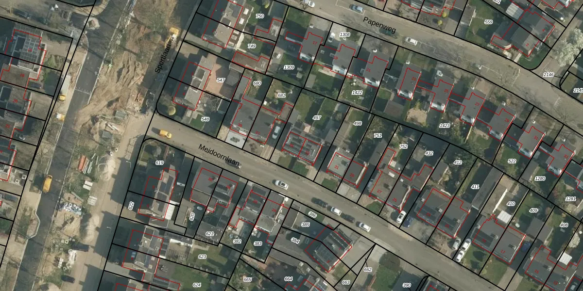 Het perceel waarop Meidoornlaan 35 staat heeft een oppervlakte van 487 m². Dit is een groot perceel. De perceeloppervlakte wordt geregistreerd door het Kadaster. Gedetailleerde informatie over de maten van dit perceel kunt u vinden in het rapport Kadastrale kaart met maatvoering van Meidoornlaan 35.