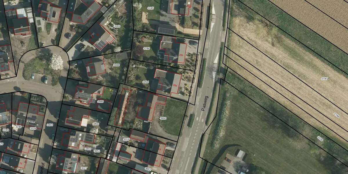 Het perceel waarop Pasweg 20-a staat heeft een oppervlakte van 630 m². Dit is een groot perceel. De perceeloppervlakte wordt geregistreerd door het Kadaster. Gedetailleerde informatie over de maten van dit perceel kunt u vinden in het rapport Kadastrale kaart met maatvoering van Pasweg 20-a.