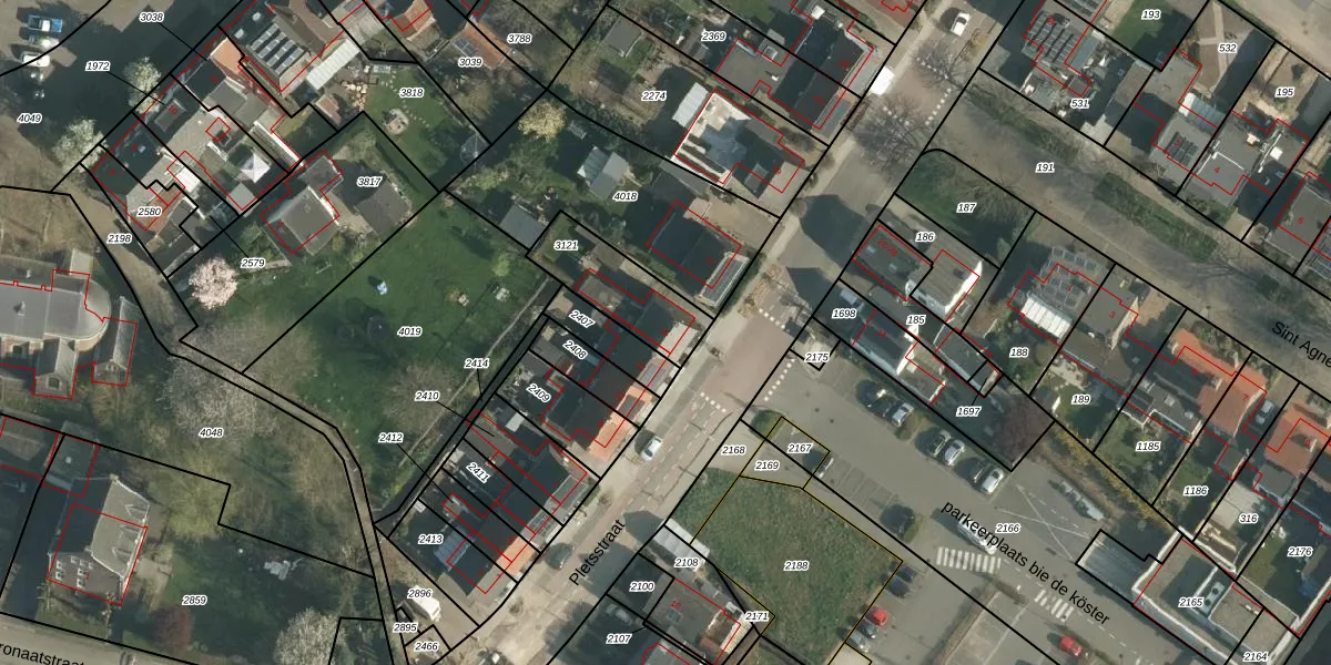Gebruik de zoekbalk of klik op een perceel voor informatie over de adressen binnen dit perceel.
