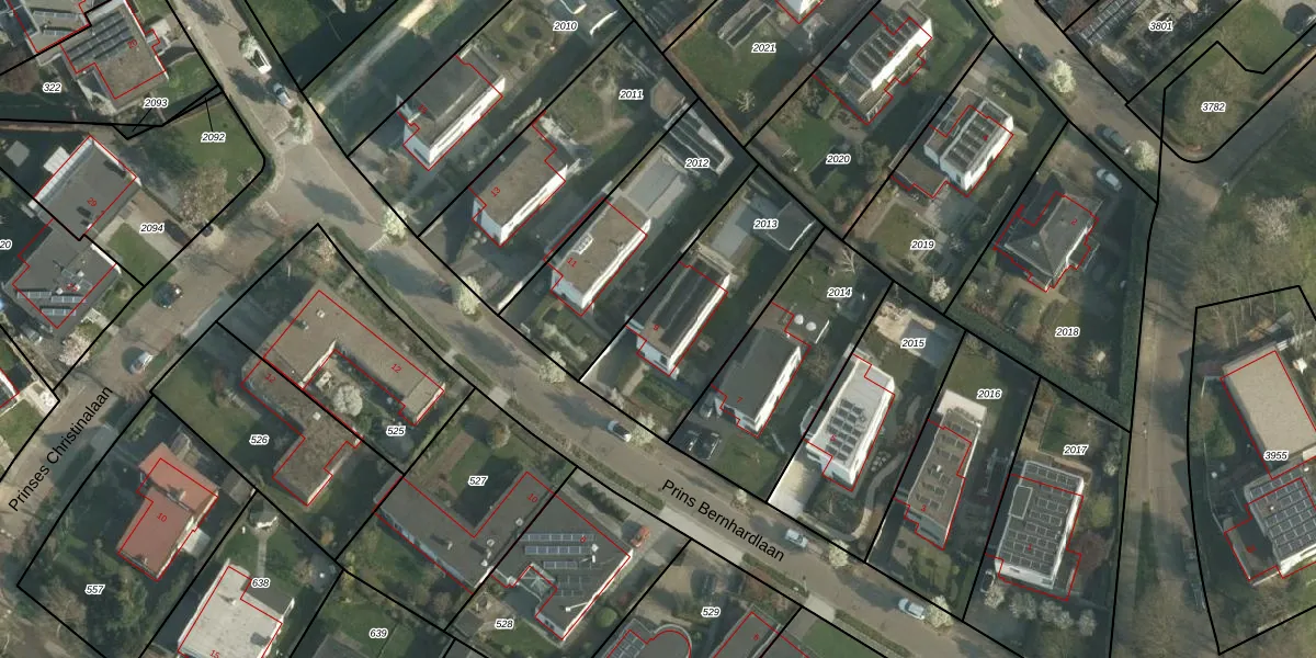 Het perceel waarop Prins Bernhardlaan 9 staat heeft een oppervlakte van 631 m². Dit is een groot perceel. De perceeloppervlakte wordt geregistreerd door het Kadaster. Gedetailleerde informatie over de maten van dit perceel kunt u vinden in het rapport Kadastrale kaart met maatvoering van Prins Bernhardlaan 9.
