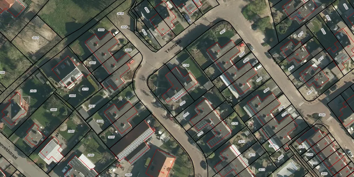 Het perceel waarop 't Kempke 13 staat heeft een oppervlakte van 405 m². Dit is een groot perceel. De perceeloppervlakte wordt geregistreerd door het Kadaster. Gedetailleerde informatie over de maten van dit perceel kunt u vinden in het rapport Kadastrale kaart met maatvoering van 't Kempke 13.